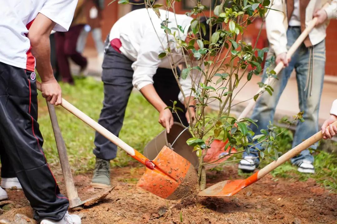 安全监督:强调在植树过程中工具使用的安全性和植树区域的安全管理,避免学生嬉戏打闹造成意外伤害。最后种下26棵树,美丽的校园在我们的共同努力下,变得更加生机勃勃!