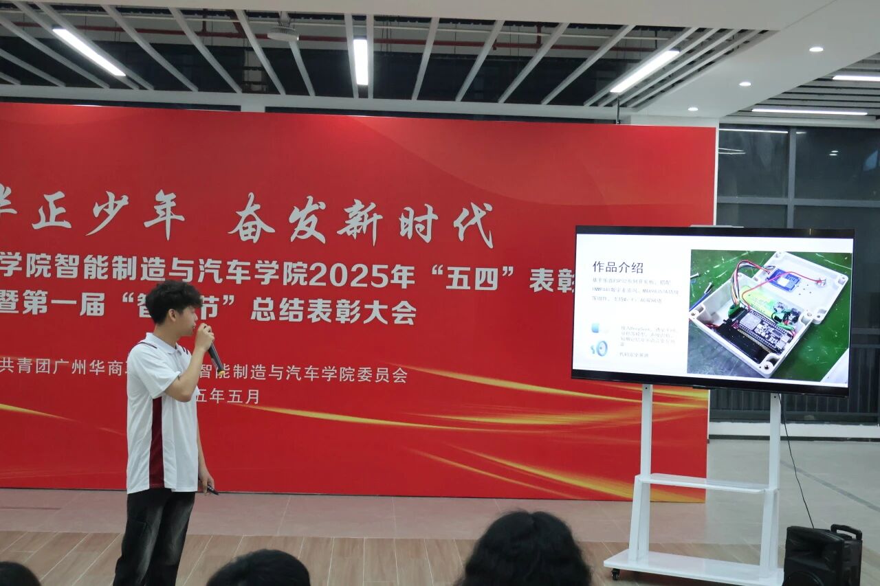 学院团委书记黄琳璇老师宣读《关于表彰智能制造与汽车学院2025年“五四”评优先进个人和集体的决定》和《智能制造与汽车学院关于公布第一届“智能节”获奖名单的决定》,希望受表彰的集体和个人珍惜荣誉,再接再厉,发挥先锋模范作用;并号召学院广大学生以先进为榜样,弘扬“五四”精神,坚定信念,勇担使命。