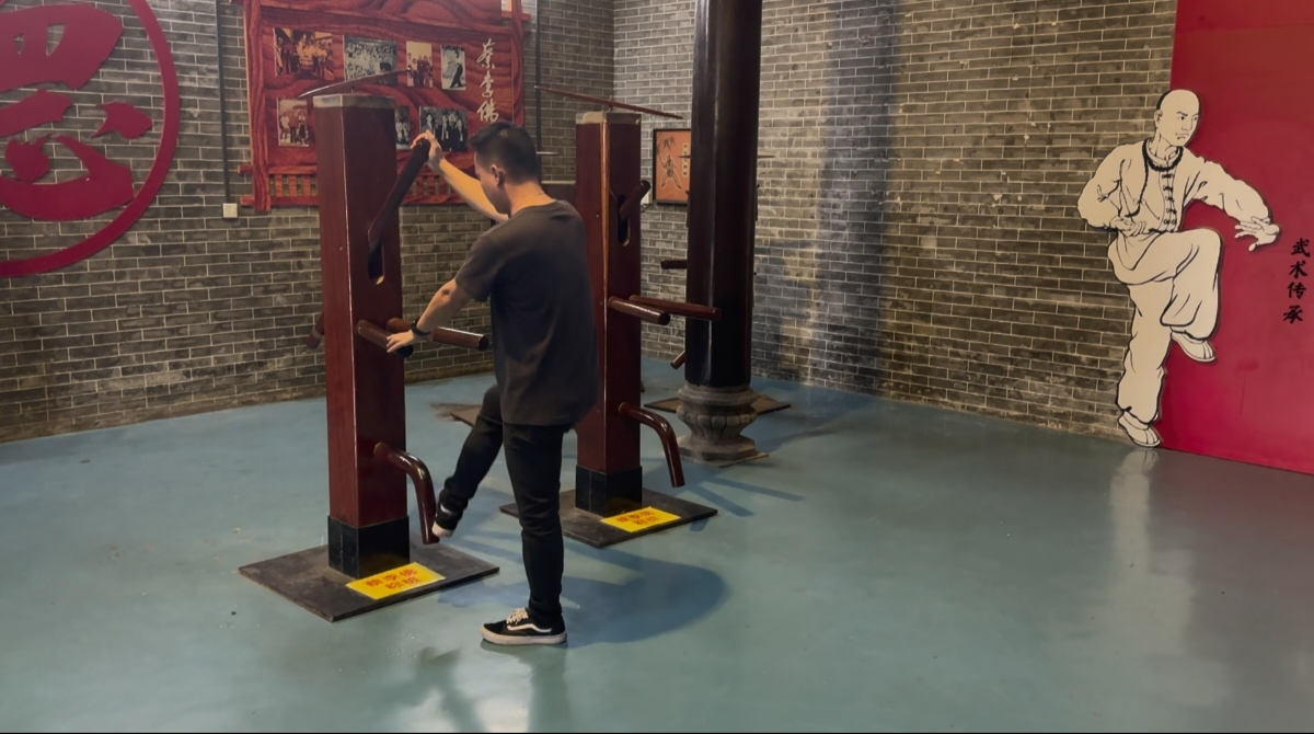 非遗传承不能只靠“围观”。剪辑师们用“第一天学拳”的笨拙花絮,剪成反差感拉满的短视频,广为传播。另外,学习蔡李佛拳,领悟非遗文化魅力,后续担任志愿者教授游客蔡李佛拳法。