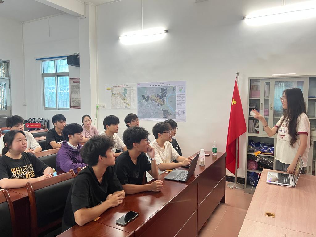 安全守则会议上,温瑞瑜老师为突击队队员们开展墙绘开工前的安全总动员。她重点强调脚手架高空作画的风险防范,为队员们系统讲解了包括防坠落、防工具掉落、防颜料泼洒等各类需严加预防的安全隐患,将“平安落笔”的理念深植于每个环节,为即将开启的墙面绘制筑牢安全防线。