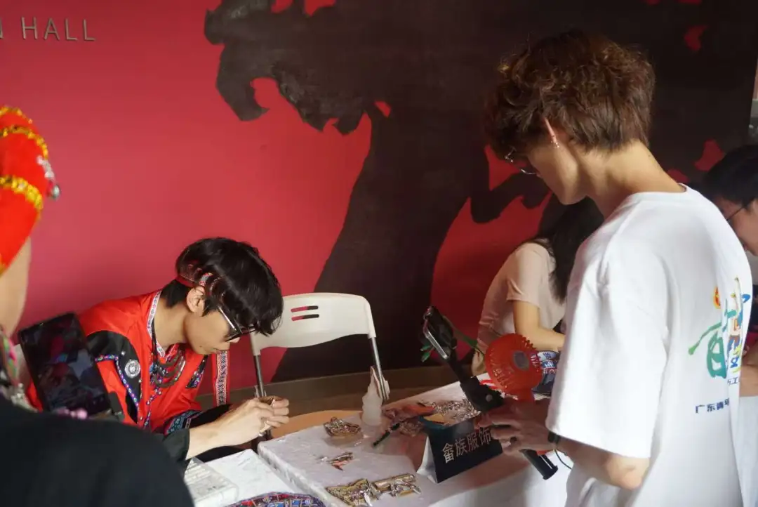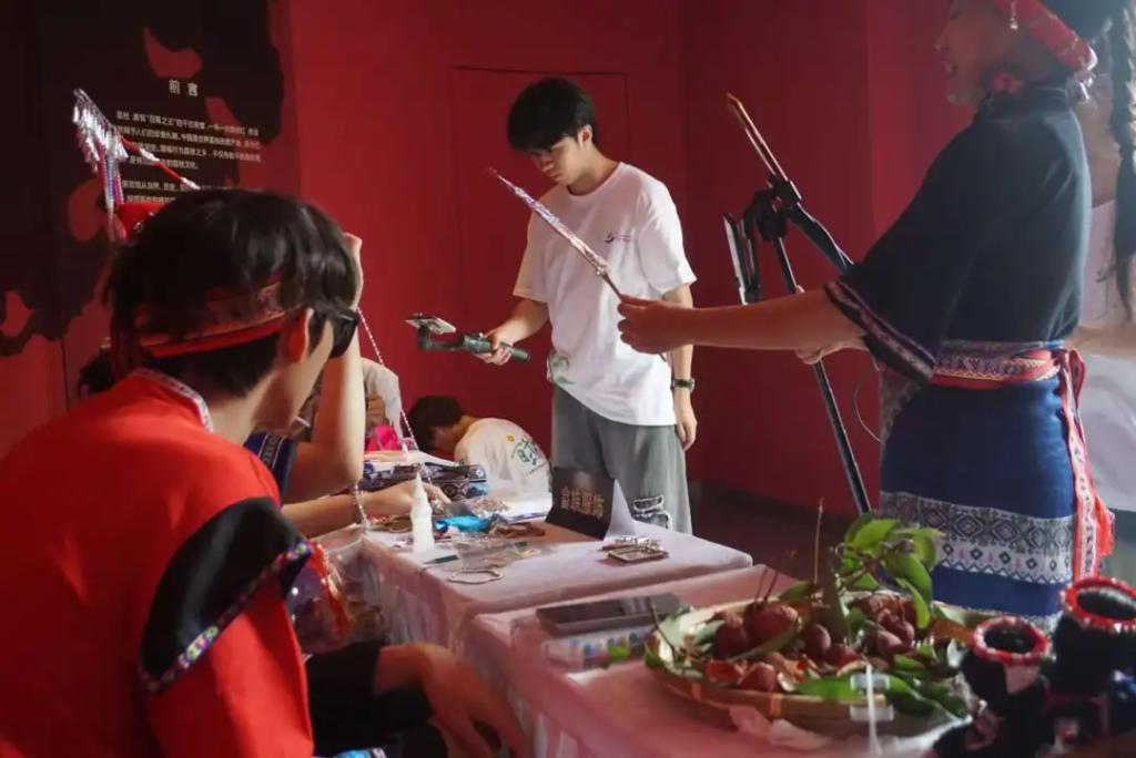 走进畲族文化工作室,一场与非遗文化的深度对话拉开帷幕。工作室里,一件件精美的畲族服饰、银饰和竹编工艺品让人目不暇接。队员们围在传承人身边,听他们讲述每一件作品背后的故事,了解畲族文化的历史渊源和制作工艺。