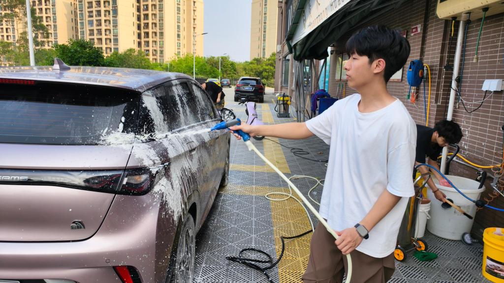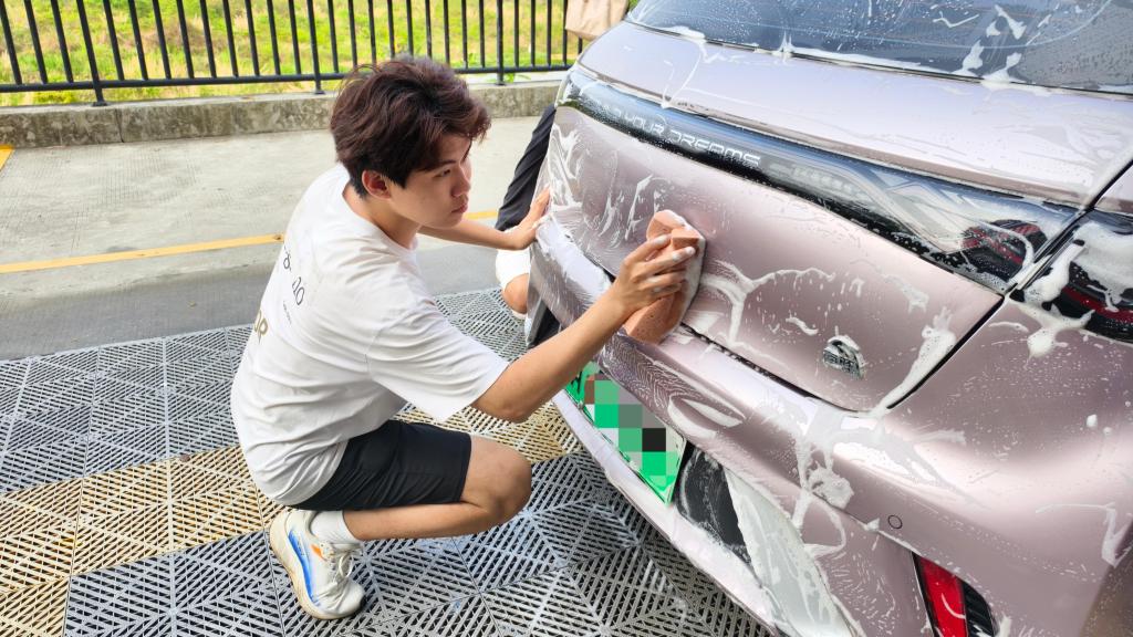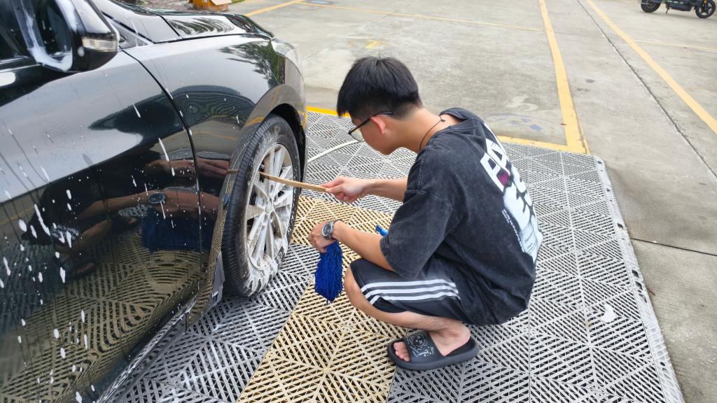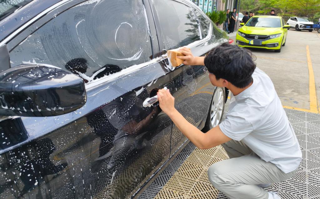 进入洗车环节,志愿者们配合默契,从高压预洗、泡沫擦拭到冲洗擦干,每一步都一丝不苟,力求让每一辆车都焕然一新。尽管汗水浸湿衣衫,热情却丝毫不减,用双手传递着志愿服务的温暖。