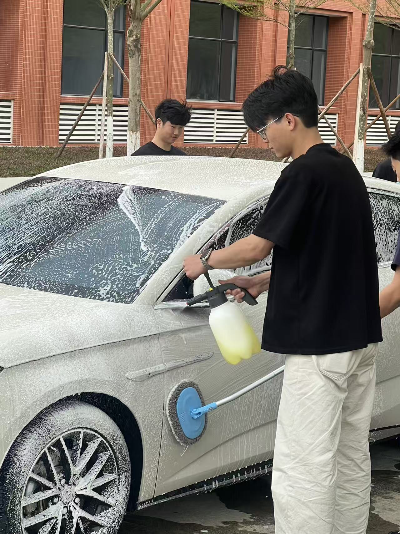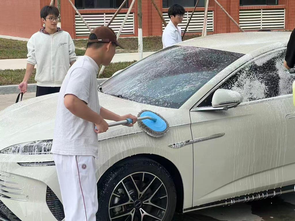 贴心的服务赢得了前来洗车的老师们一致好评,志愿洗车活动既解决了老师们生活中的实际需求,更在校园里营造了学雷锋、献爱心的良好氛围。每一句“辛苦啦”“洗得真干净”,都是对志愿精神的最好回应。