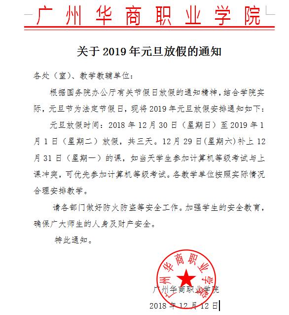 上一条:华商职院2019年寒假放假通知