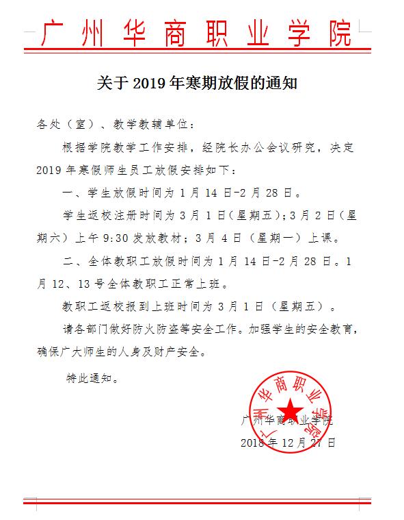 上一条:广州华商职业学院2018-2019年寒假放假温馨提示(转载学生处)