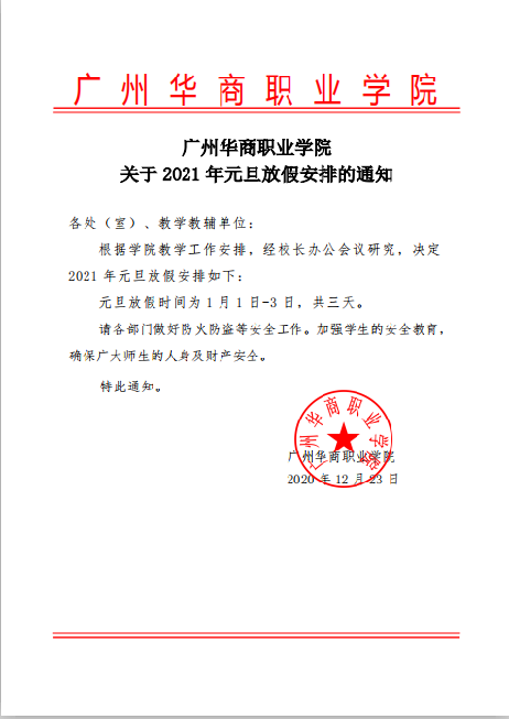 下一条:广州华商职业学院2018-2019年寒假放假温馨提示(转载学生处)