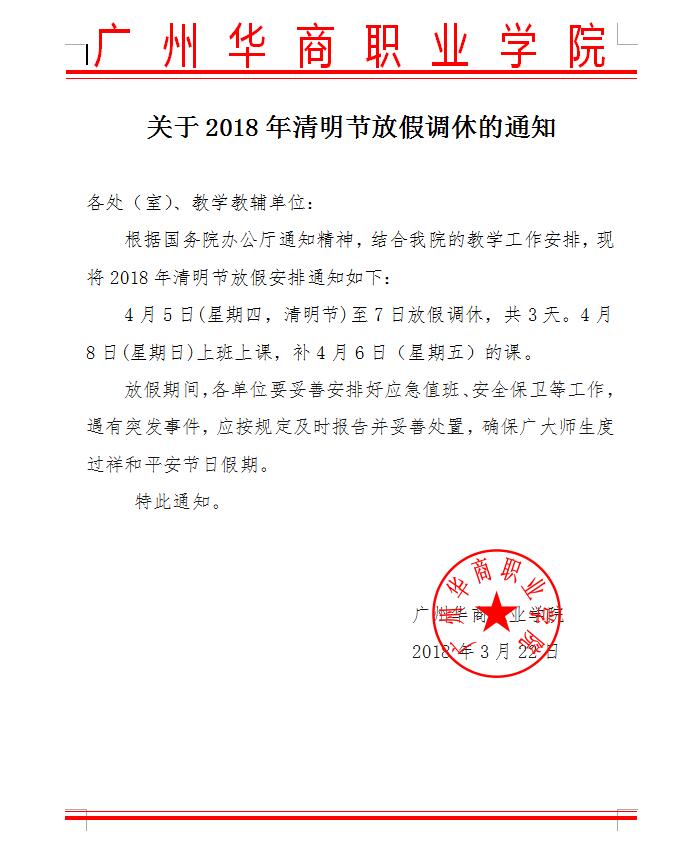 上一条:华商职院关于2018年劳动节及五四青年节放假调休的通知