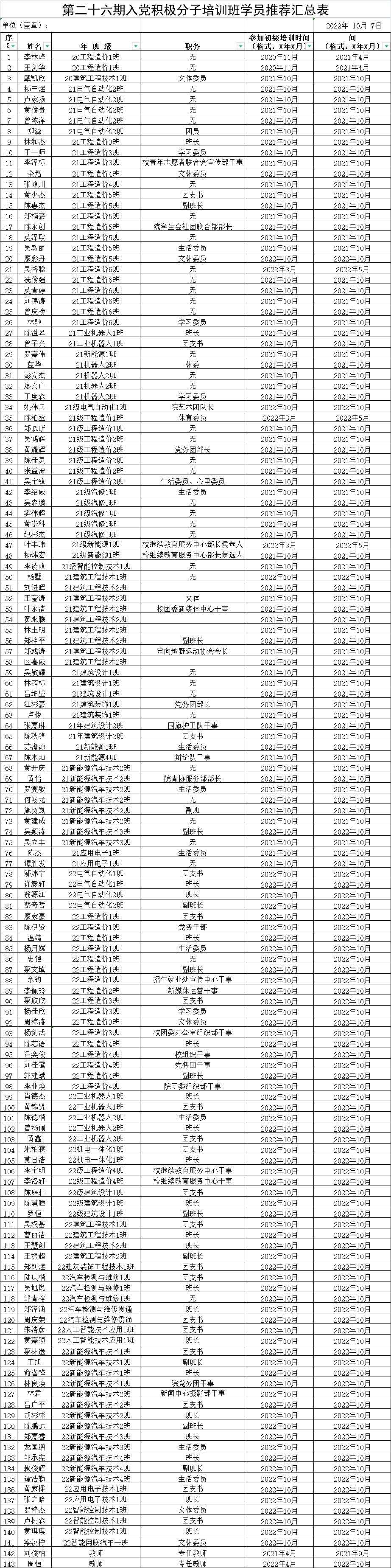 智能工程学院第二十六期中级党校培训人员名单公示