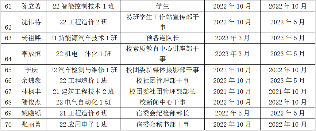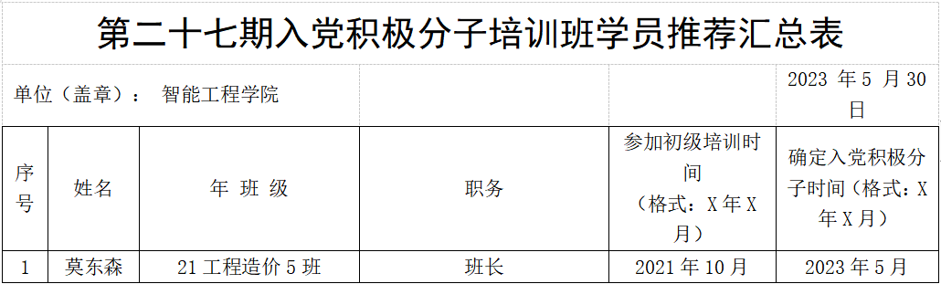 经智能工程学院各班级团支部推选,学院初级党课考核,学生第一党支部、学生第二党支部审查以及讨论决定,拟推荐莫东森等70名入党积极分子参加本期的中级党课培训,现将名单予以公示。