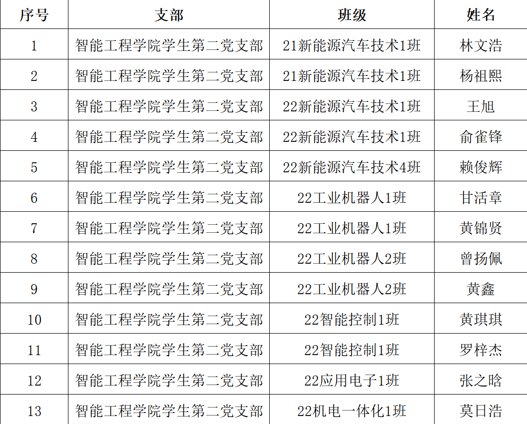 学生第二党支部拟接收预备党员名单
