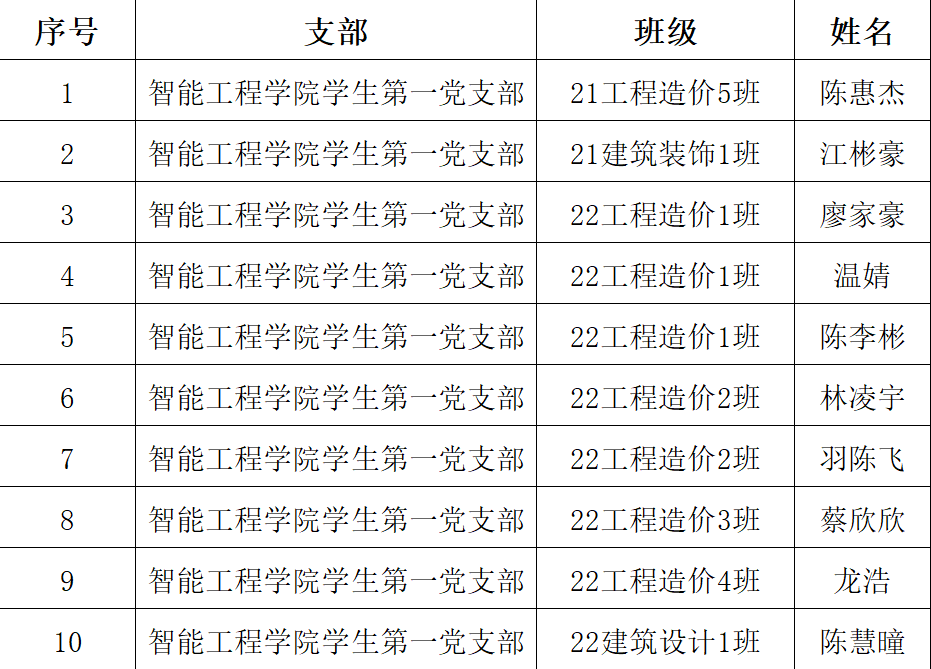 学生第一党支部拟接收预备党员名单