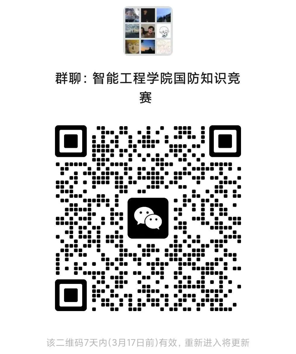 随着国家现代化建设的步伐加快,国防安全已成为国家发展的重要保障。为进一步增强大学生的国防意识,增长专业国防知识,培塑爱国主义精神,为国防现代化的发展贡献智慧和力量。智能工程学院团委学生退役服务队决定举办“爱我国防 青春力量”国防知识竞赛。现将有关事项通知如下。