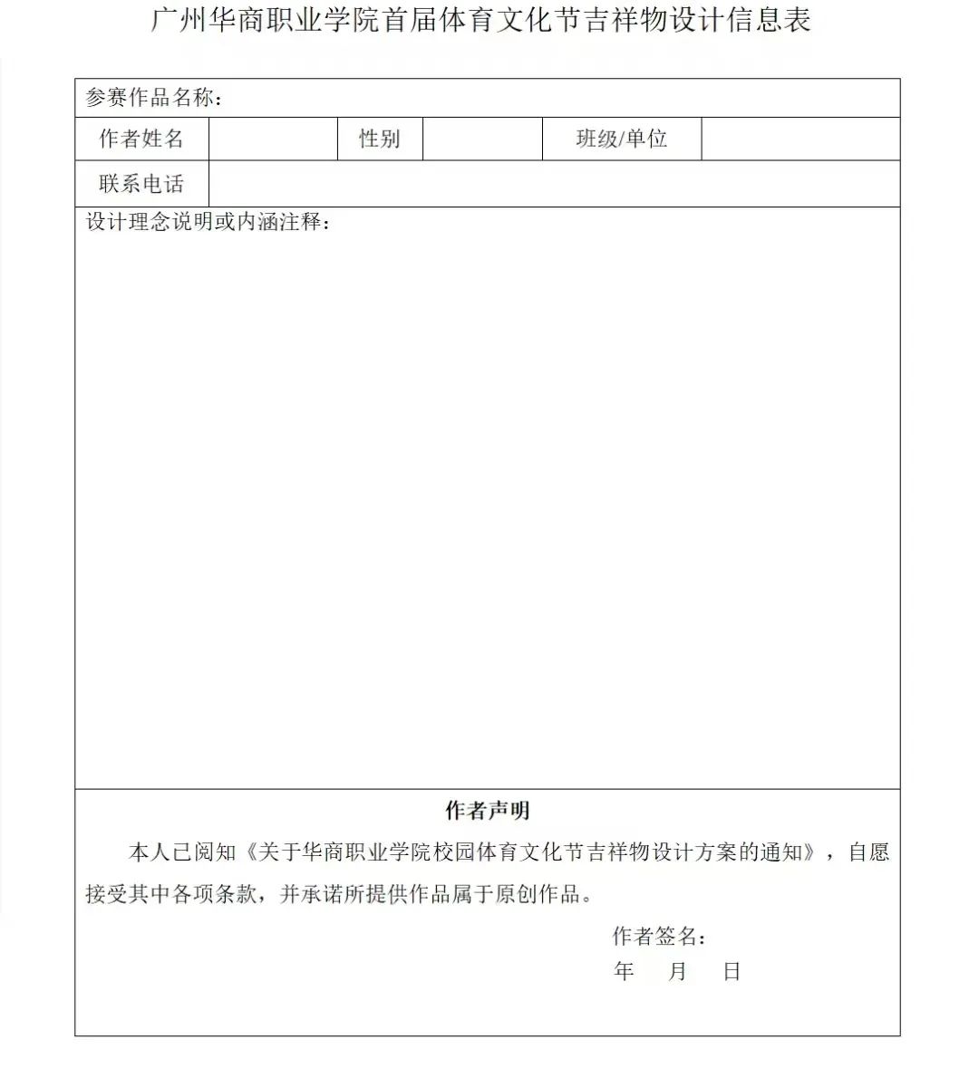 附件:广州华商职业学院首届体育文化节吉祥物设计信息表.docx
