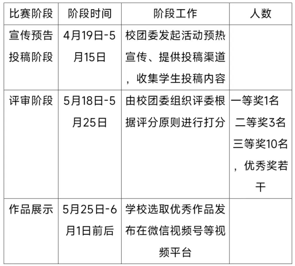 学校将对参赛及获奖作品汇总,并选取优秀作品发布在微信视频号。