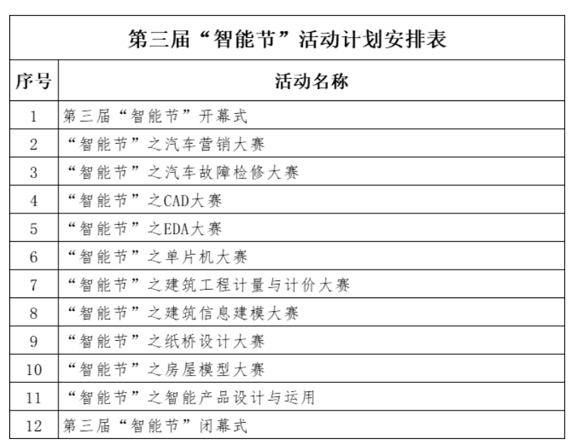 为全面践行学校“厚德、励志、博学、创新”的校训精神,不断丰富和提升校园文化生活的内涵与层次,充分展示我院素质教育和人才培养相互融合的独特魅力和丰硕成果。经学院党政联席会议决定,举办第三届智能节活动。本次活动致力于校园文化与专业学习的深度融合,紧密结合省级学生技能竞赛内容,全面提升我院青年学生的科技创新素养与技能实践操作能力,激励更多的师生参与到各类专业技能与科技创新比赛。下面,将有关事项通知如下: