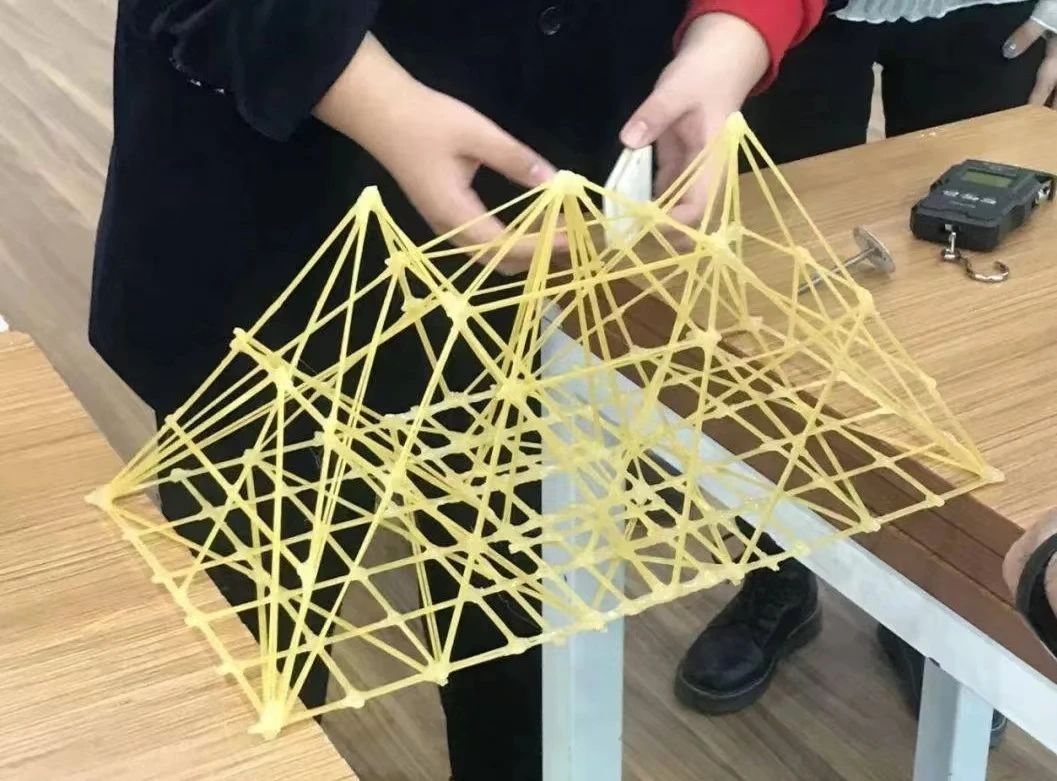 该赛道旨在考察参赛者的巧思与匠心,挑战他们利用有限的意大利面与胶带,构建一座长度不超过50厘米、兼具创意与稳定性的桥梁结构。在此过程中,参赛者需巧妙地驾驭这两种独特材质,既要展现出别出心裁的设计理念,又要确保结构能够承受一定的载荷,揭示“面条”与“热熔胶”组合背后的无限可能。