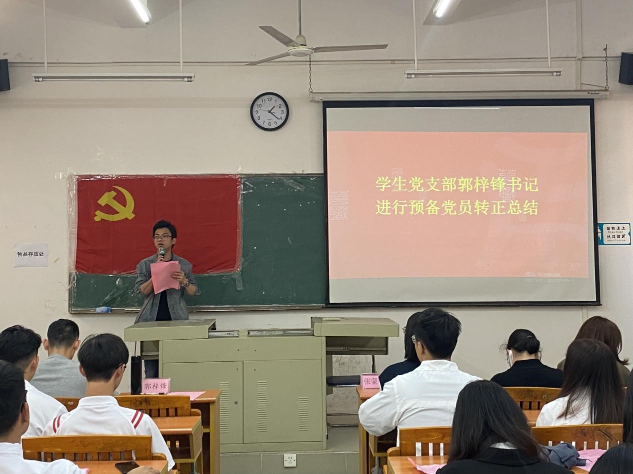 大会第三项议程,由学生党支部郭梓锋书记进行预备党员转正总结。经过到会正式党员的无记名投票,叶梦菊等十位预备党员全票通过,同意叶梦菊等十位同志吸收为中共正式党员。郭梓锋书记对顺利转正的同志予以肯定和祝贺,并希望以后各位能用党员的标准严格要求自己,能够正确处理集体利益与个人利益的关系。
