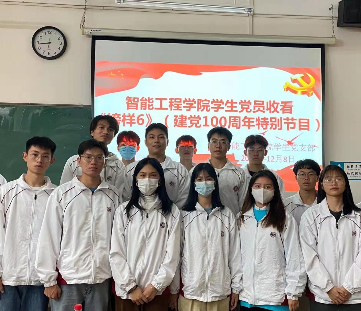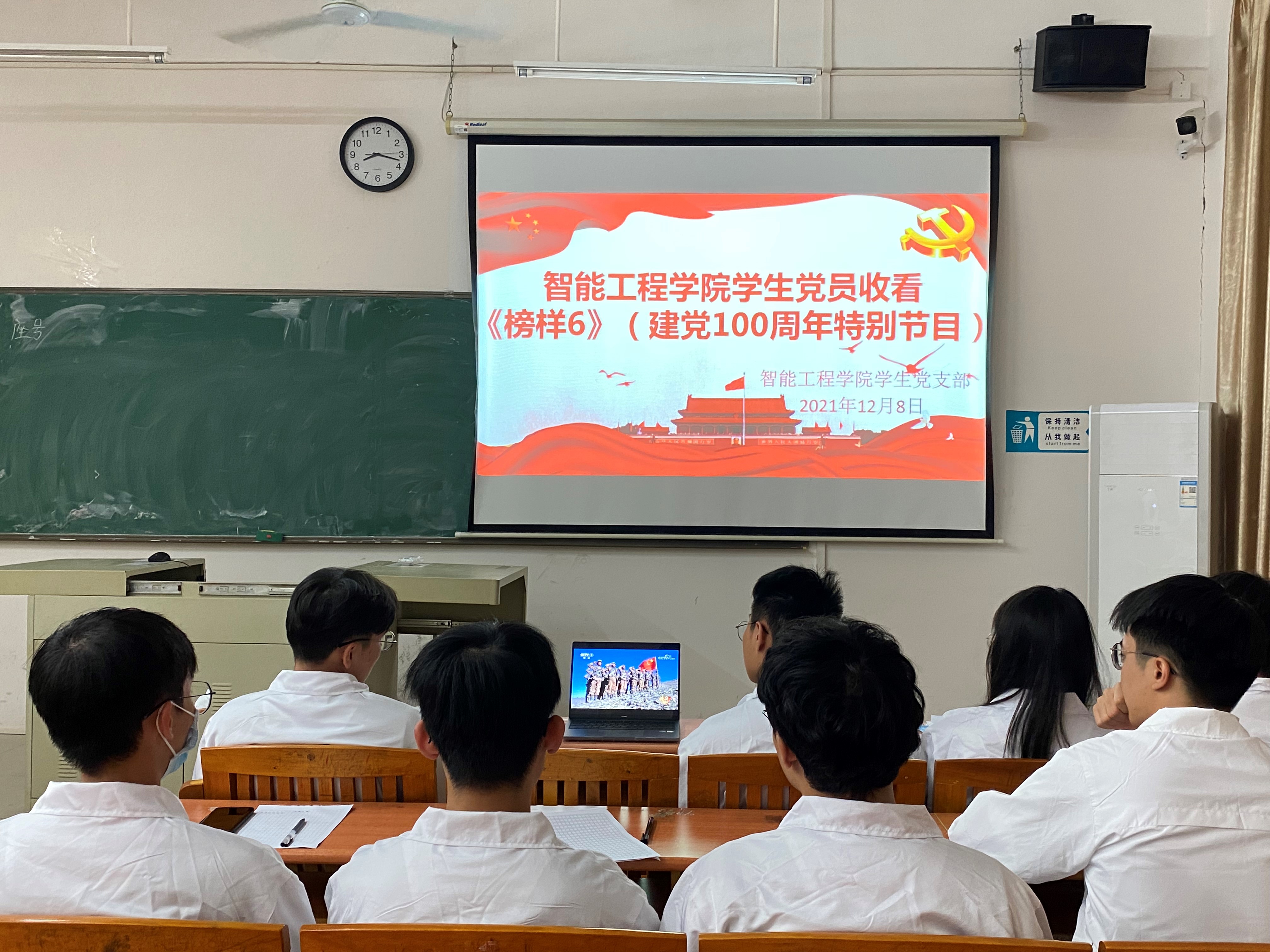 智能工程学院学生党支部于2021年12月8日晚20:00在博C505组织20级学生党员收看由中央组织部、中央电视台联合录制的弘扬全国“两优一先”典型事迹的专题节目《榜样6》。