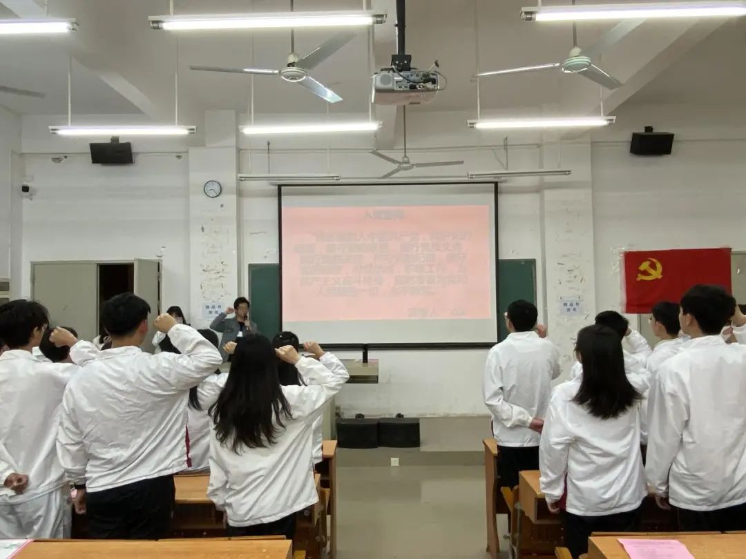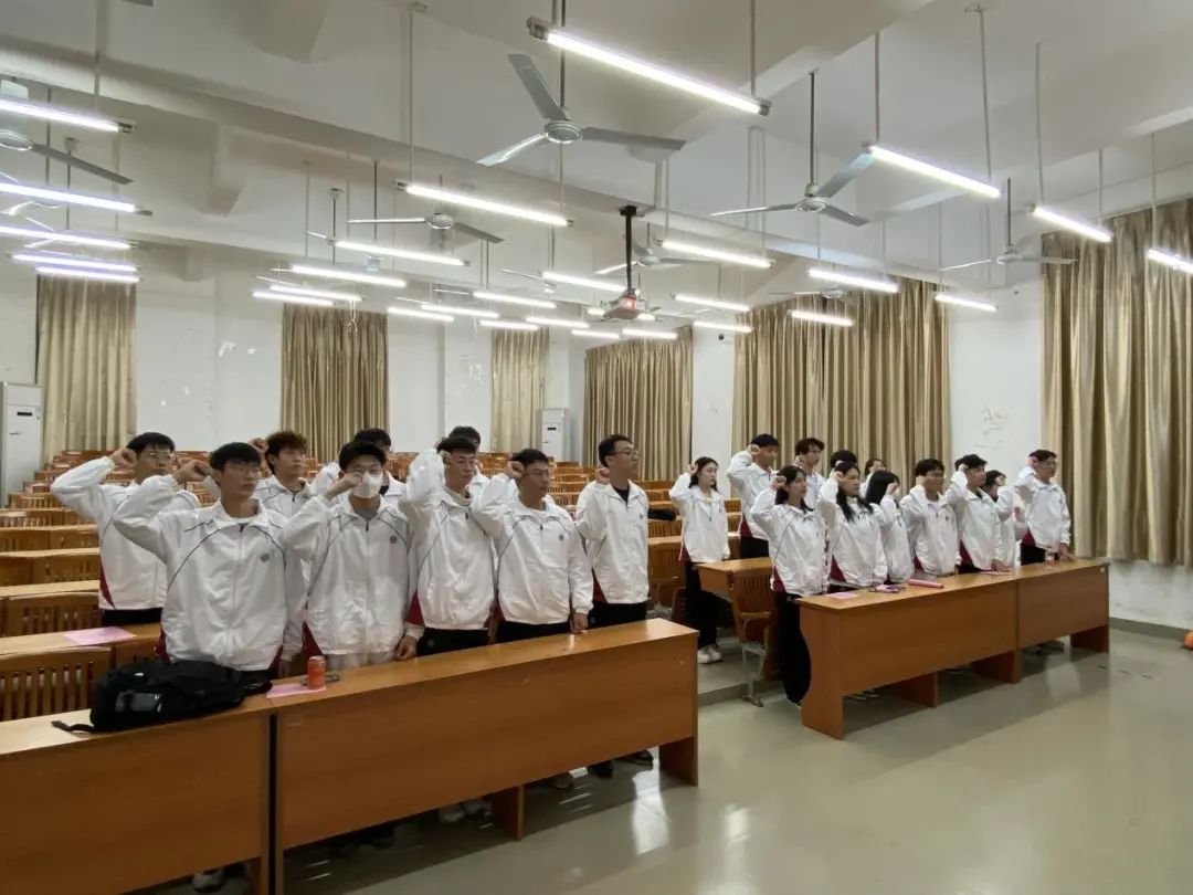 学生党支部郭梓锋书记带领23位预备党员在党旗前进行庄严的入党宣誓