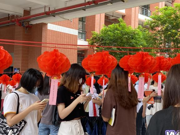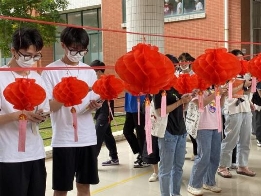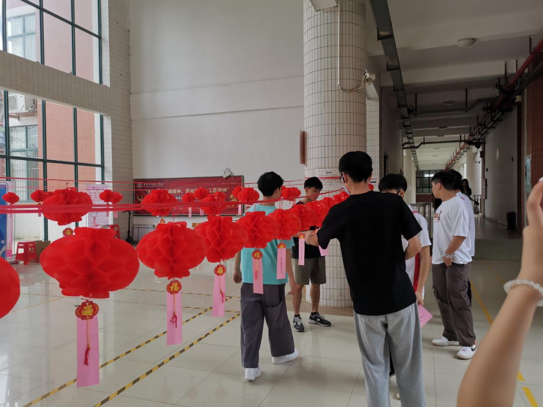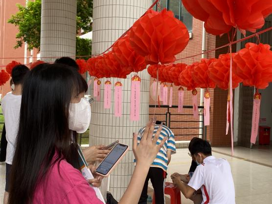 活动开展前期,智能工程学院党务团全体成员精心筛选上百灯谜题库,裁剪于红色卡纸上,将灯笼和“红色”灯谜高高悬挂于活动现场,鲜艳喜庆的灯笼下谜条随风摇曳,别具风味,成了一道亮丽的风景线。以灯谜的方式为学习载体,从文化视角对中国共产党的历史进行生动诠释,使广大青年学子在猜谜的过程中深入了解中国共产党走过的风雨历程,学习党史鉴往知来。