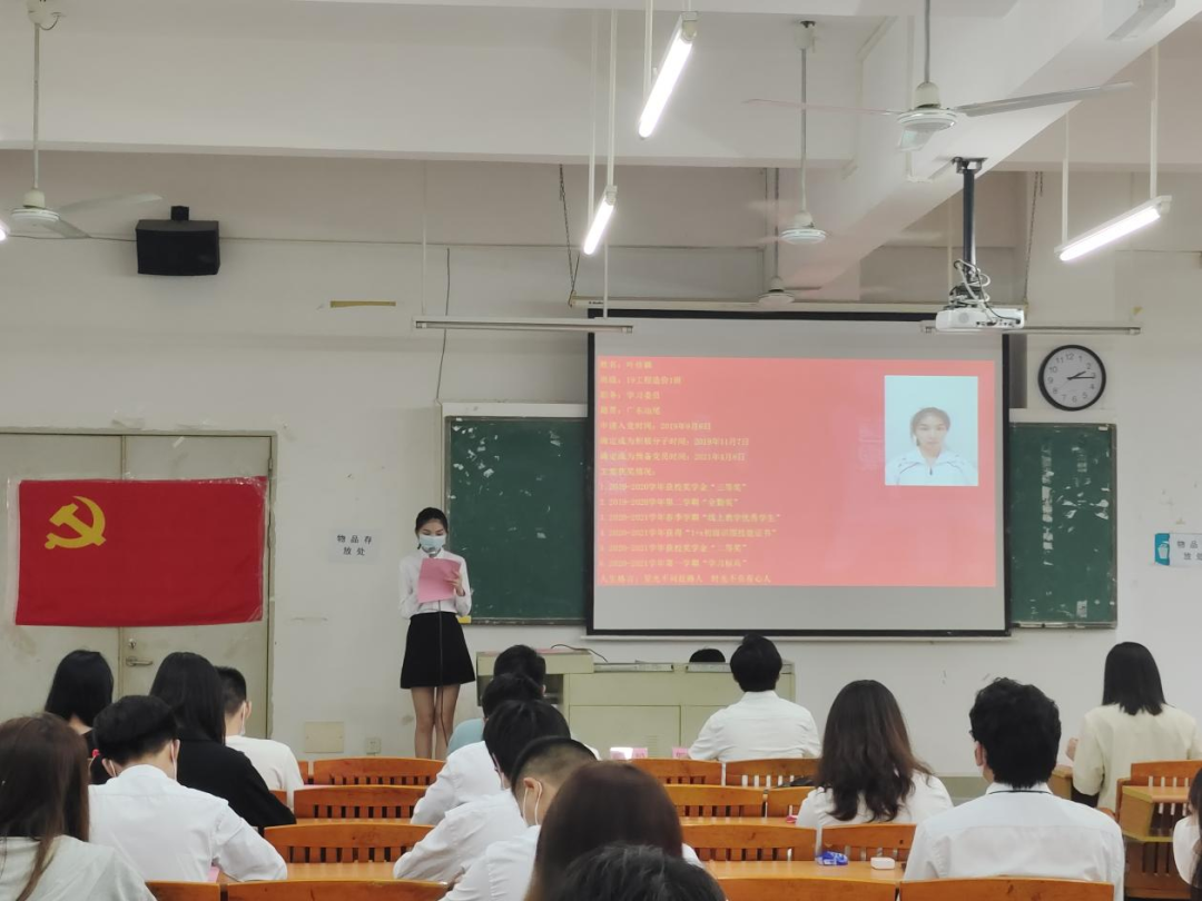 紧接着叶佳颖等39名预备党员,依次上台发言,从思想、学习、生活、工作等方面汇报预备期个人情况,同时也针对自己的缺点和优点进行了详细的剖析,并表明坚定了共产主义理想和社会主义理念,为了共产主义事业奋斗终生。紧接着入党介绍人介绍预备党员有关情况,表明意见。