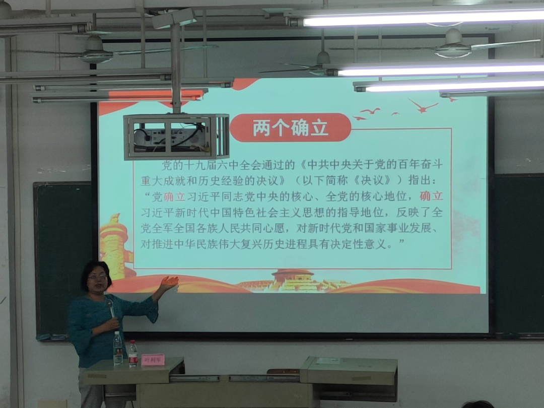 此次党课授课老师分别为:党办组织科科长姚柏洲老师、马克思主义学院院长叶利军教授、党支部书记陈金苗老师。