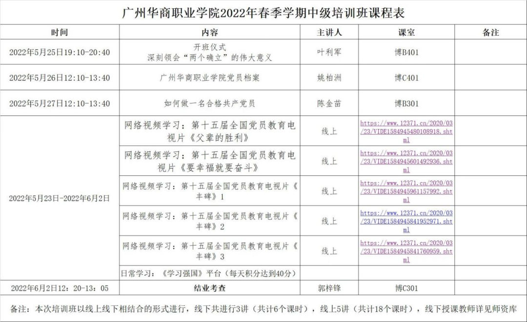 本次培训班以线上线下相结合的形式进行,线下共进行3讲(共计6个课时),线上5讲(共计18个课时)。党课培训分别以专题教育、讲座讲授、党史影像资料、讨论学习、考核等几个方面进行。