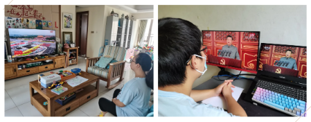 在家的党员老师也早早地守在电视机、电脑、手机前,期待重大历史时刻的到来。我们何其有幸,生于华夏、生于盛世,作为9514.8万名中国共产党员中的一员,见证了今天这一伟大时刻,见证了中国共产党一次又一次的伟大胜利!