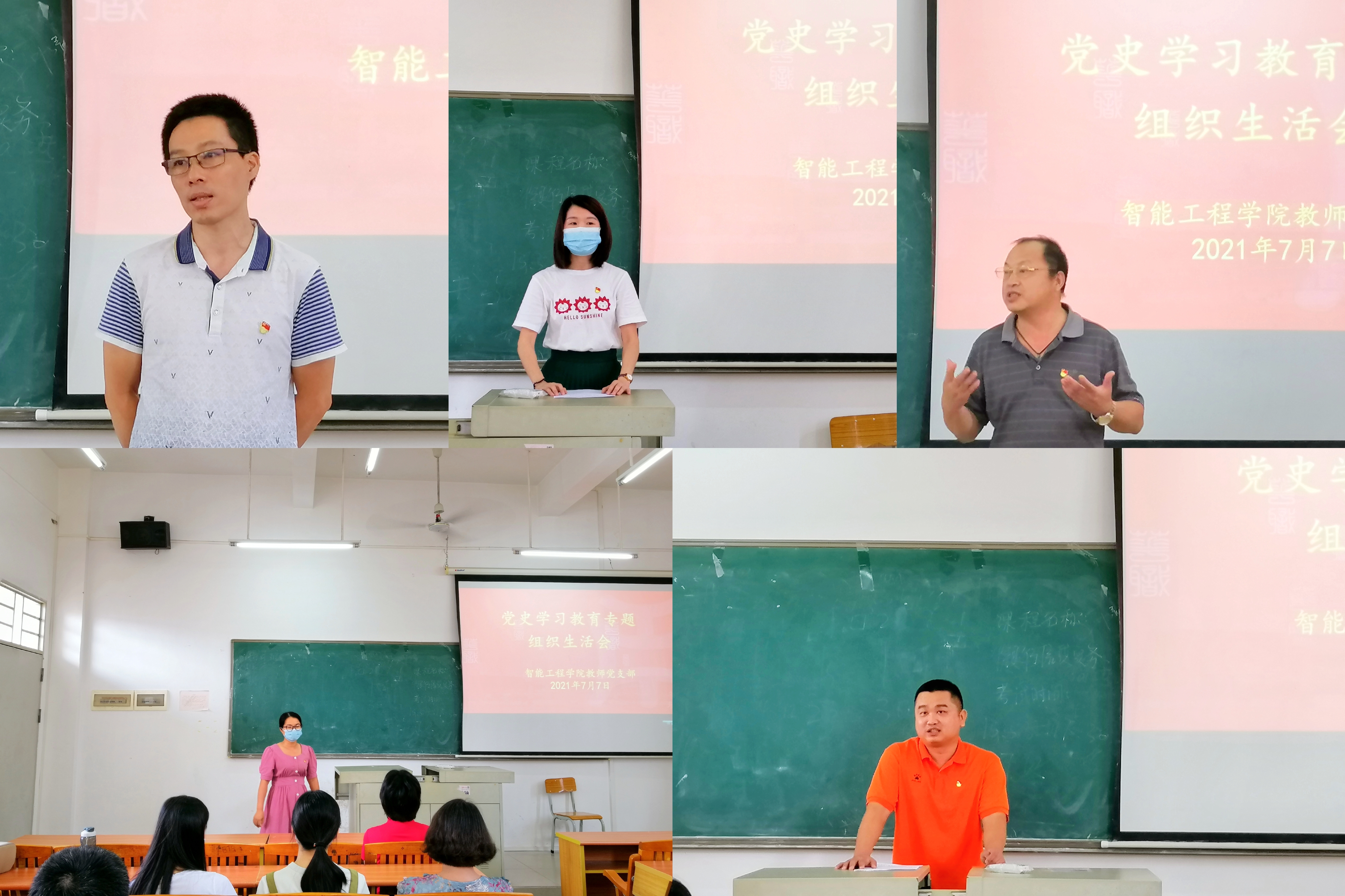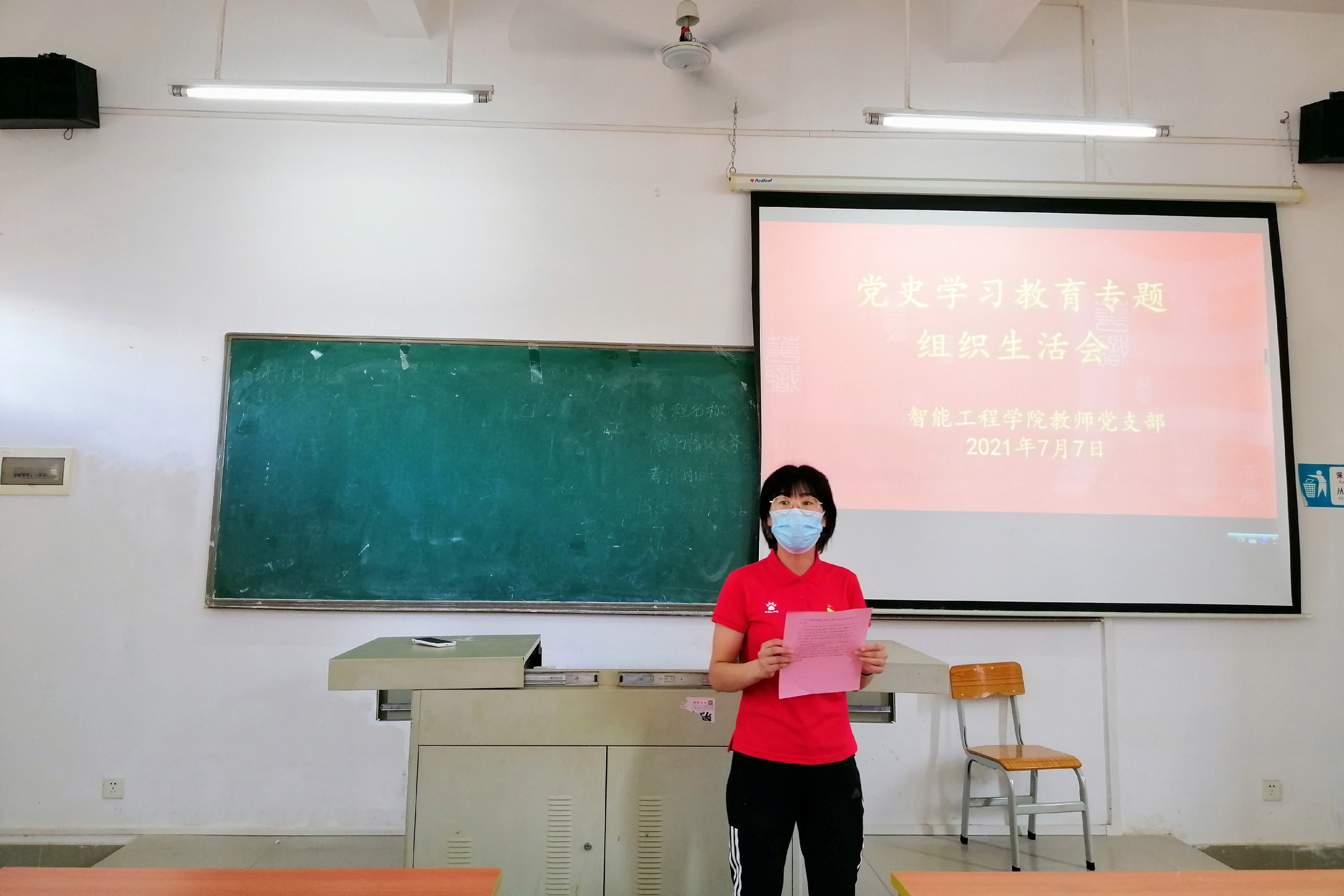 会上党支部书记张蒙莉就智能工程学院教师党支部2021年这半年的工作情况作出汇报,尤其对开展的党史学习教育活动进行详细说明。随后党员逐一发言,讲在学习党史中的收获提高,也说出了个人学习上的差距不足,开展自我批评和批评。