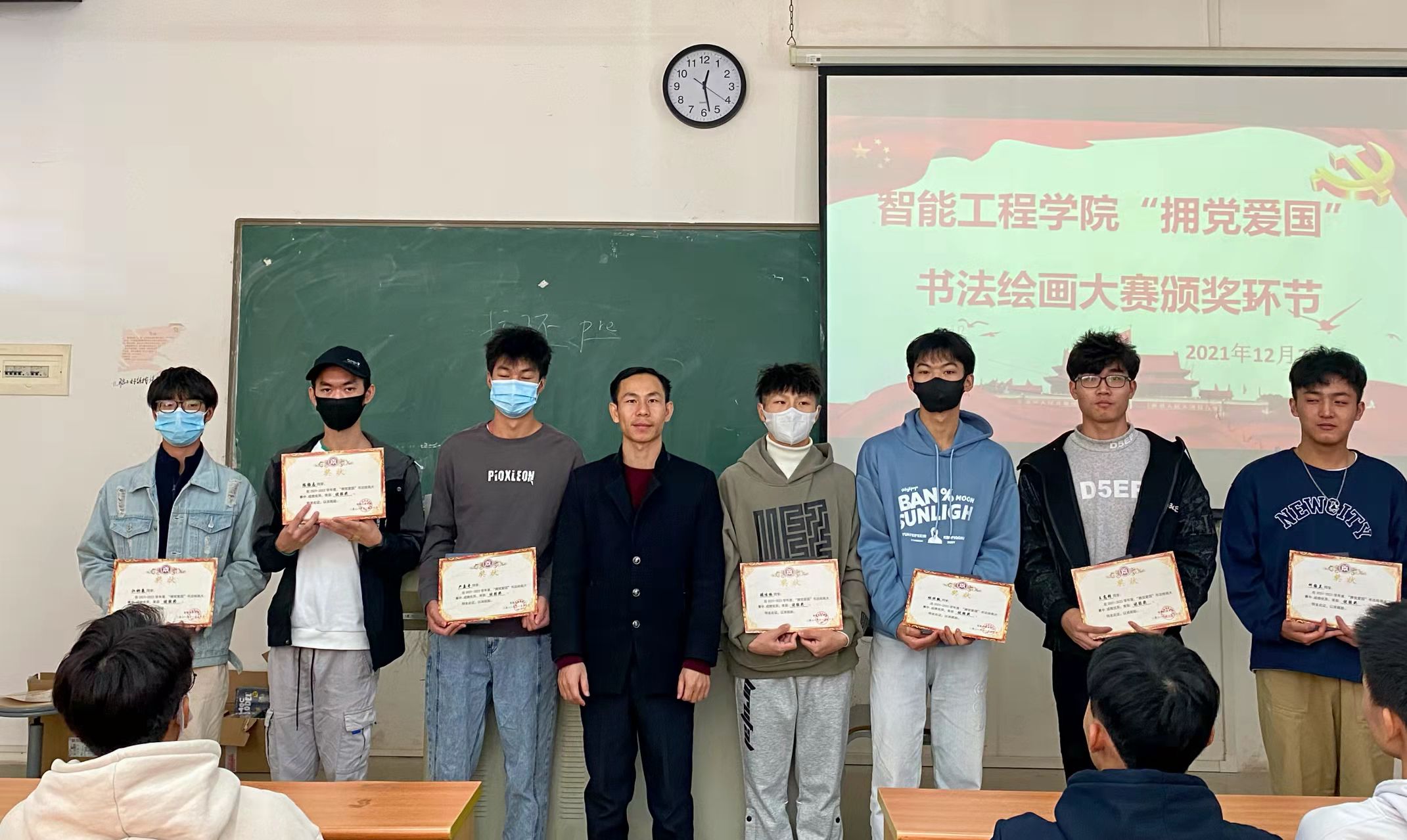 经过为期一个月的筹备、选拔、展出,此次智能工程学院学生党支部“拥党爱国”书法绘画大赛圆满结束,我院于2021年12月2日在博学楼C座507,开展颁奖环节,由戴乐毅老师为获奖的同学颁发奖品及荣誉证书。比赛在高涨的氛围中圆满结束。