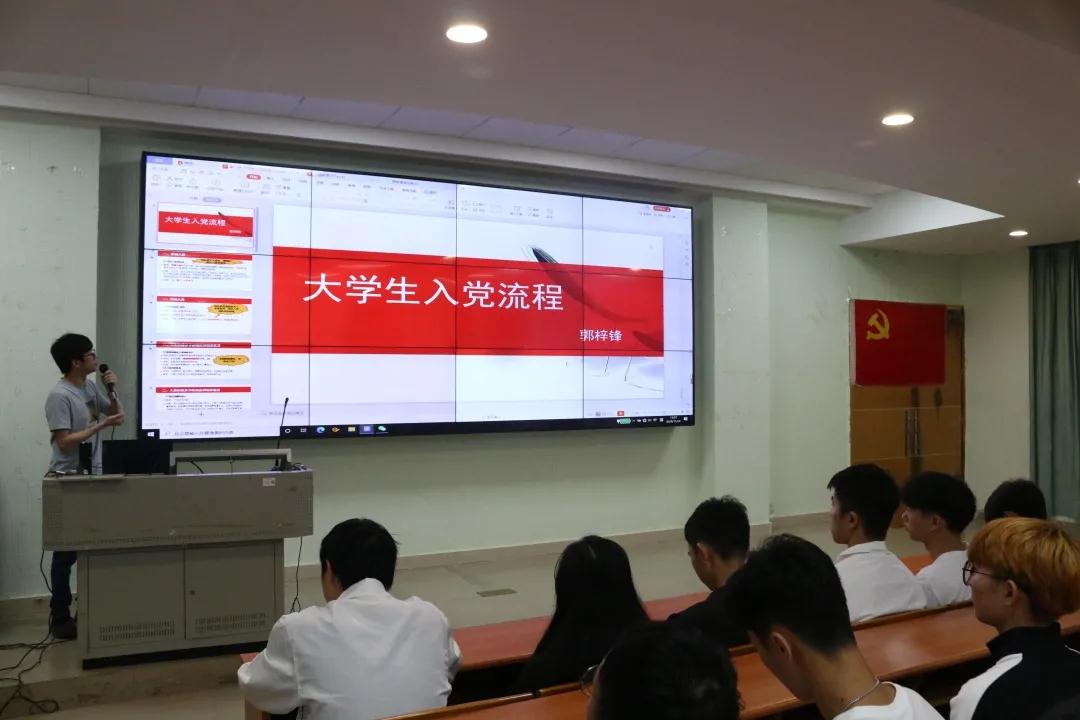 线下的培训有:2020年11月24日和2020年11月26日中午12:45分在博学楼C101开展本学期院党课第一、第二讲。分别为学生党支部郭梓锋书记主讲的“大学生入党流程”,以及党总支何标副书记主讲的“端正入党动机,争取早日入党”。