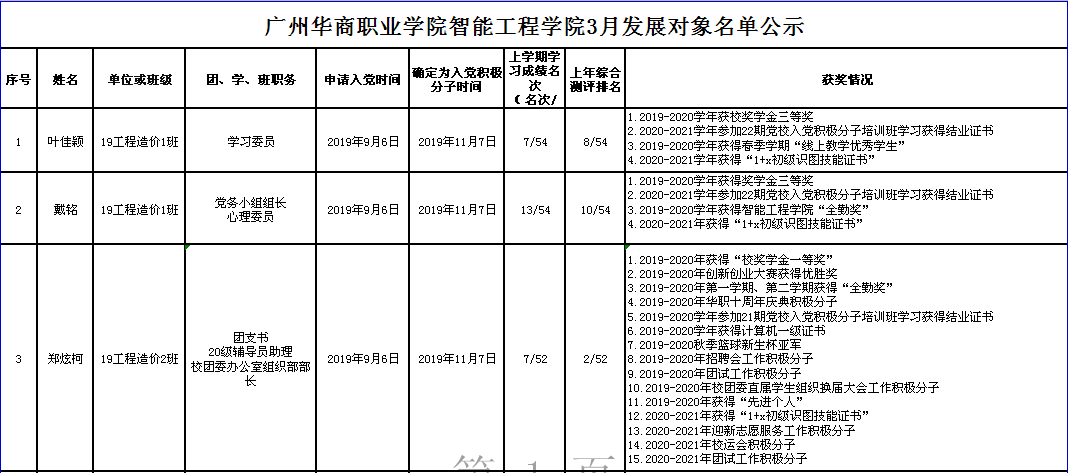 公示时间:2021年3月17日-2021年3月21日。请有意见者于公示期内以口头或书面的形式向智能工程学院办公室反映。