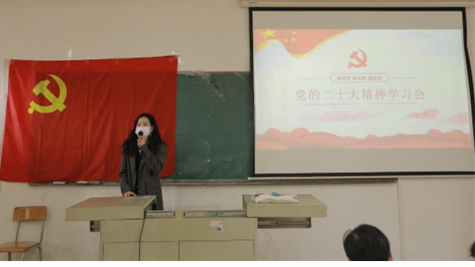 会议第一项,魏文香老师全面系统的带领大家学习党的二十大会议总体情况、党的二十大会议基本内容、党的二十大报告、党的二十大决议。魏文香老师指出,要深刻领悟“两个确立”,决定性意义“三个务必”的重要要求,坚定不移听党话、跟党走,怀揣梦想,脚踏实地,把党的二十大精神转化为促进自身进步的强大动力,以实际行动践行初心使命,为建设新时代中国添砖加瓦。