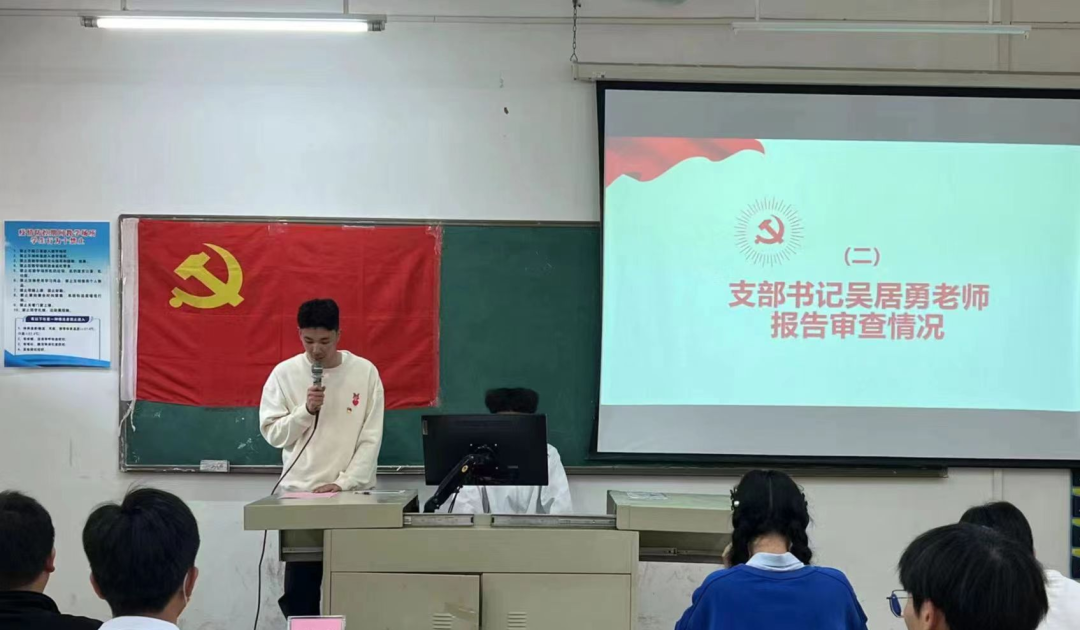 支部委员吴居勇同志代表支部委员会报告了对黄文倩等9名发展对象的审查情况,9名同志思想品质良好,入党动机端正,入党材料,内容产全,手续完善,同意履行入党手续。