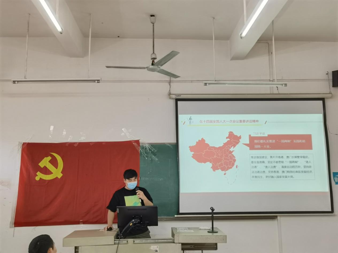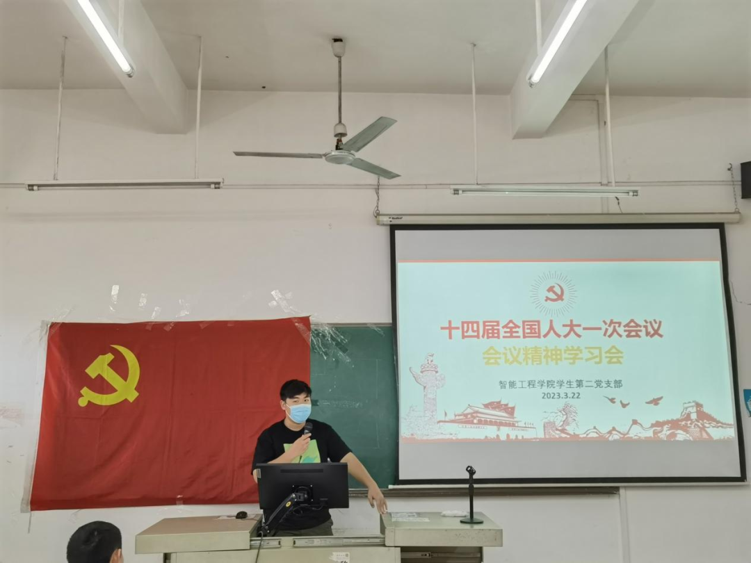 为进一步深入学习宣传贯彻十四届全国人大一次会议精神,深刻领会其本身的重大意义、丰富内涵,智能工程学院学生第二党支部于3月22日12:30分在博学楼C栋507课室开展“三会一课”理论学习会,深入学习贯彻十四届全国人大一次会议精神。出席本次会议的有智能工程学院学生第二党支部宣传委员张伟健老师、全体党员和预备党员,本场会议由张伟健老师主持。