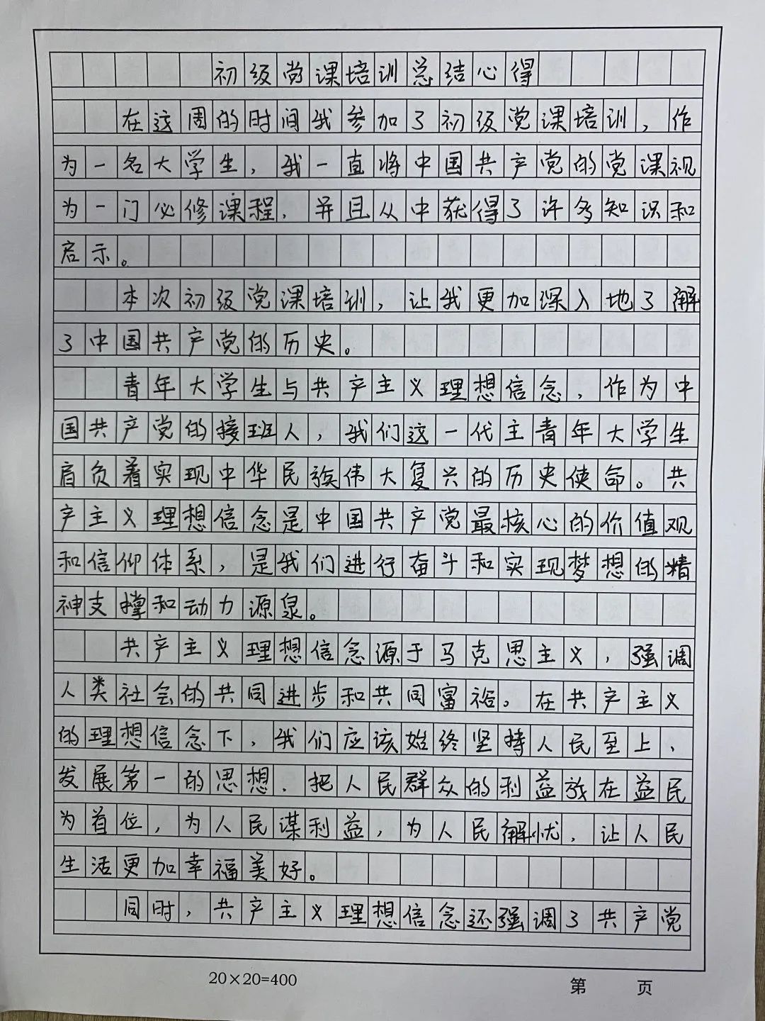 为了更好地理解党章内容、强化学员们对党的政治理论知识的掌握,我院设立了考核制度,同学们提交了学习心得,分享此次初级党课培训收获。