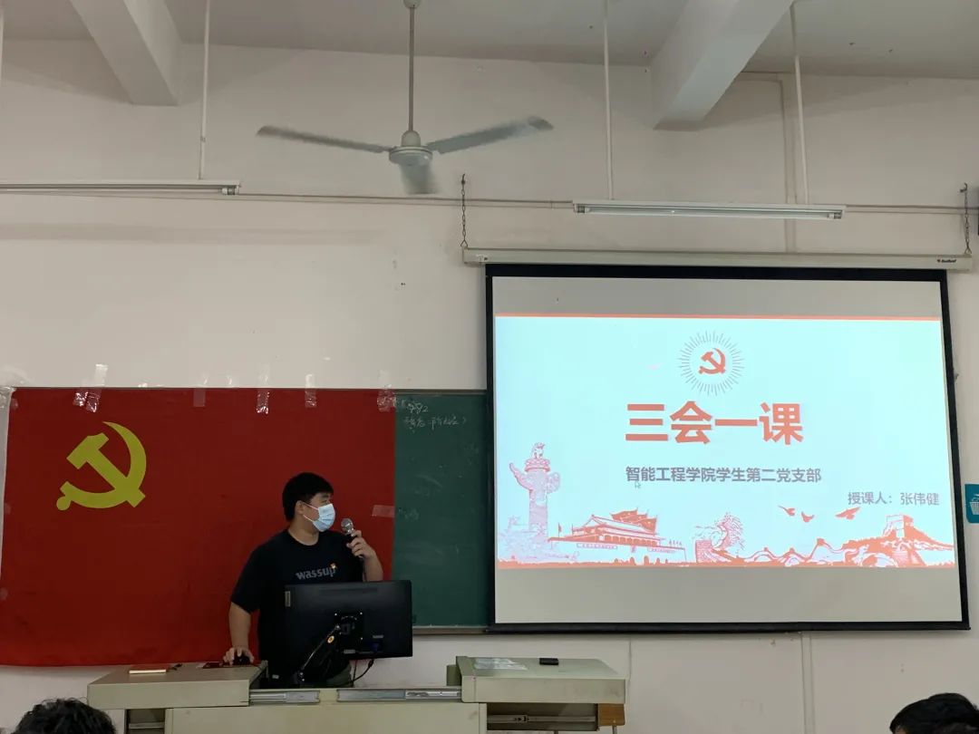智能工程学院学生第二党支部于5月31日12:00在博学楼C栋507课室开展“三会一课”坚定不移高举中国特色社会主义伟大旗帜学习会,出席本次会议的有智能工程学院学生第二党支部宣传委员张伟健老师以及全体学生党员。