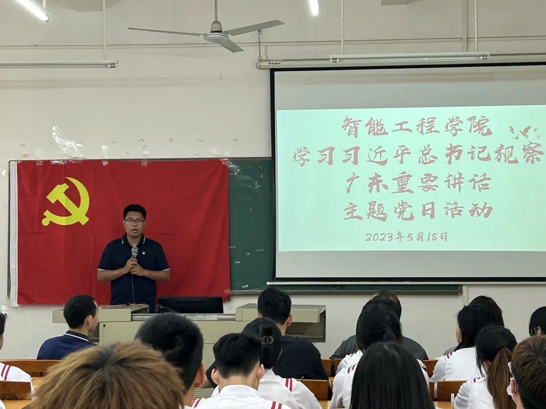 为深入学习领会习近平总书记视察广东重要讲话重要指示精神,2023年5月18日,智能工程学院党总支组织开展深入学习贯彻习近平总书记视察广东重要讲话重要指示精神,学院全体师生党员参加了此次会议。