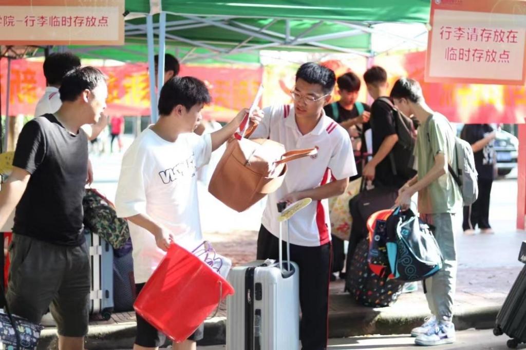 党员志愿者们各司其职,帮助新生接送行李、指引新生报道注册、介绍校园特色等,让新生们感受到亲切热情的校园氛围。纵使大雨滂沱,党员志愿者们依旧热情不减,将“全心全意为人民服务”这一宗旨落实到迎新环节。