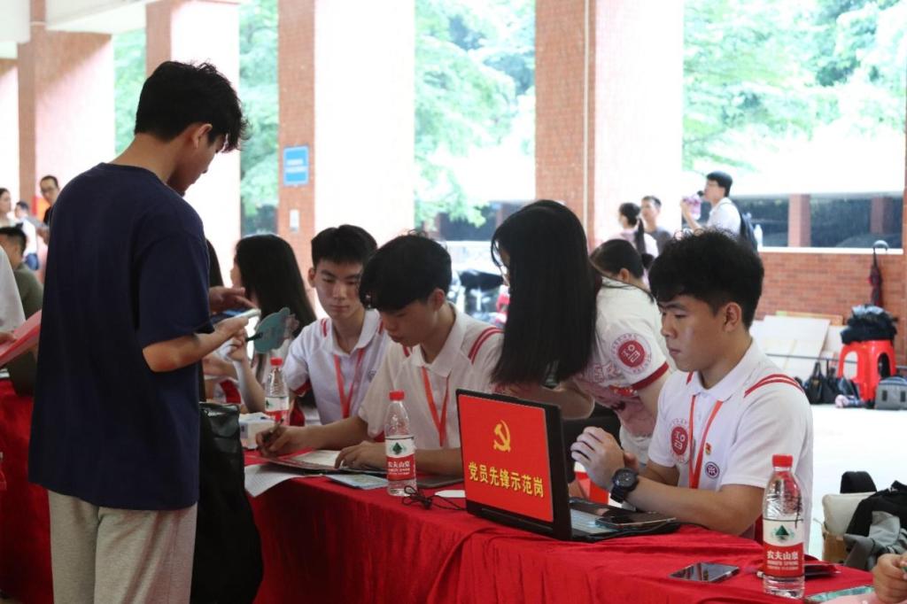 在迎新期间,各党员同志始终坚持站在迎新第一线,欢迎着大家的到来。他们的细心解惑,引领着大家开启新的篇章。党员同志们的模范表率也为新生树立起榜样,为新生的内心点亮一抹红色。