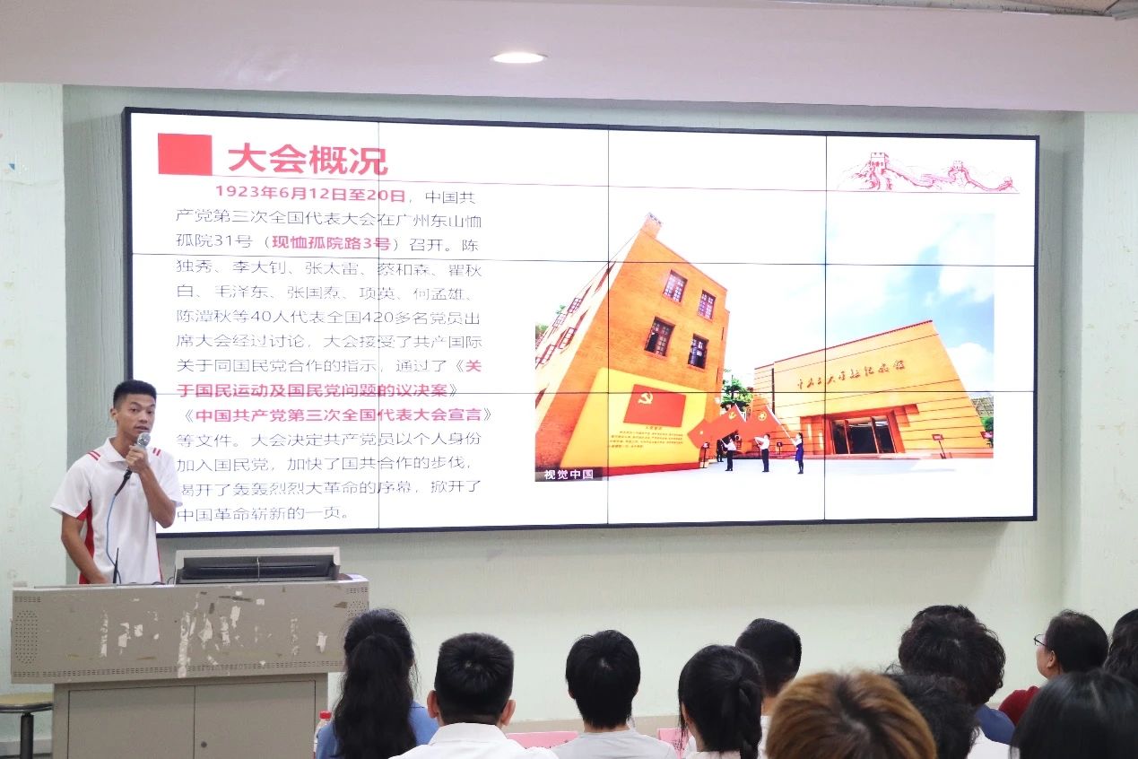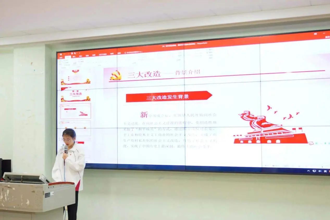 时间是伟大的书写者。会上,学生党员依次上台汇报自己的学习成果,带领在场所有同志见证中国不凡的征程,记录祖国走过的足迹,践行党在长期革命与建设实践中孕育形成的光荣传统和优良作风。