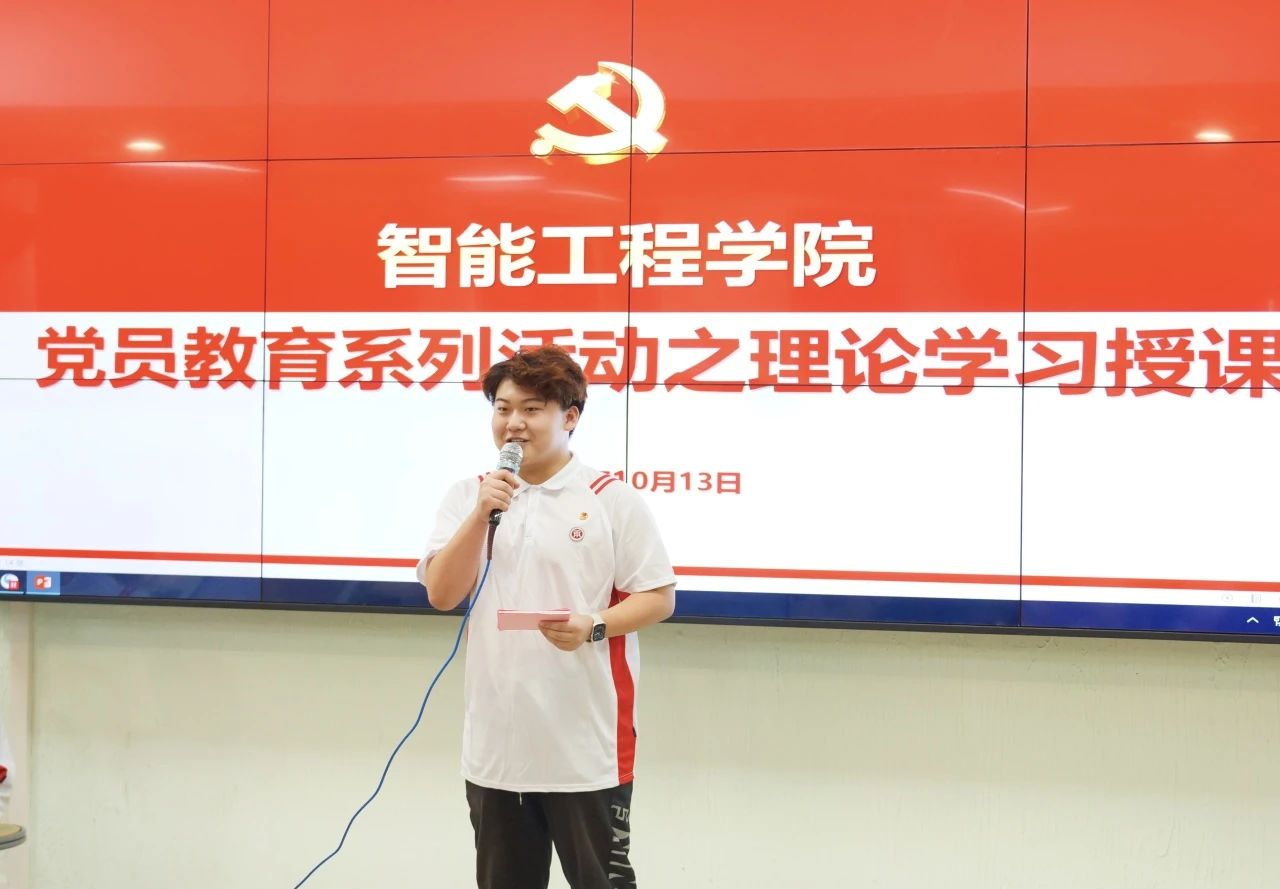 2023年10月13日中午12点10分智能工程学院在博C101课室召开“筑牢党性根基,勇担时代使命”党员教育系列活动之理论学习授课第一场次,会议由学生第一党支部书记魏文香老师主持,参会人员有智能工程学院全体党务干部、全体预备党员、发展对象、22级入党积极分子代表、23级班级代表。