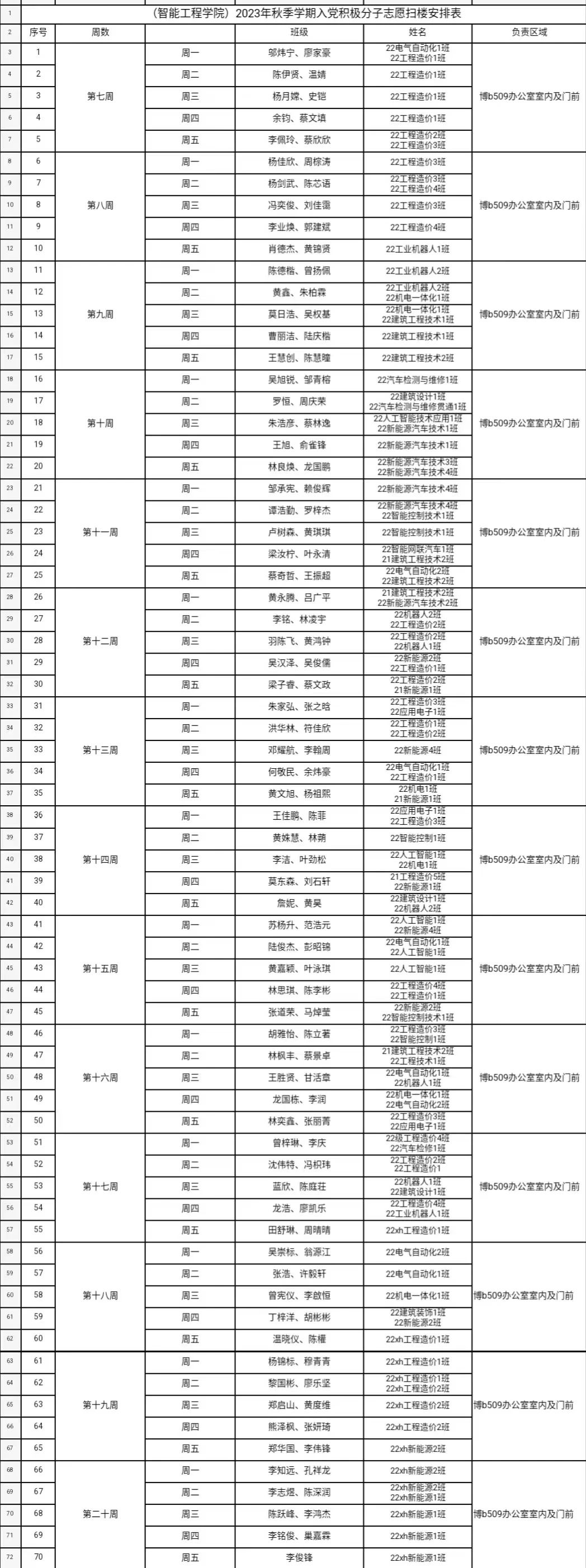 为助力美丽校园建设,营造良好的学习氛围,加强对入党积极分子的思想教育,践行为群众办实事的使命,自2023年10月9日起,智能工程学院第26、27期入党积极分子对博学楼b栋509办公室室内及门前卫生区域展开了为期一学期的志愿清扫活动。