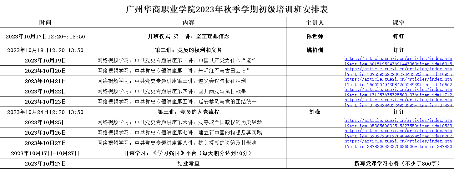 智能工程学院于2023年10月17日至2023年10月27日开展秋季学期初级党课培训。本次培训将从专题教育、讲座讲授、党史影像资料、讨论学习、考核等几个方面进行,参加培训人员为递交入党申请书的同学。
