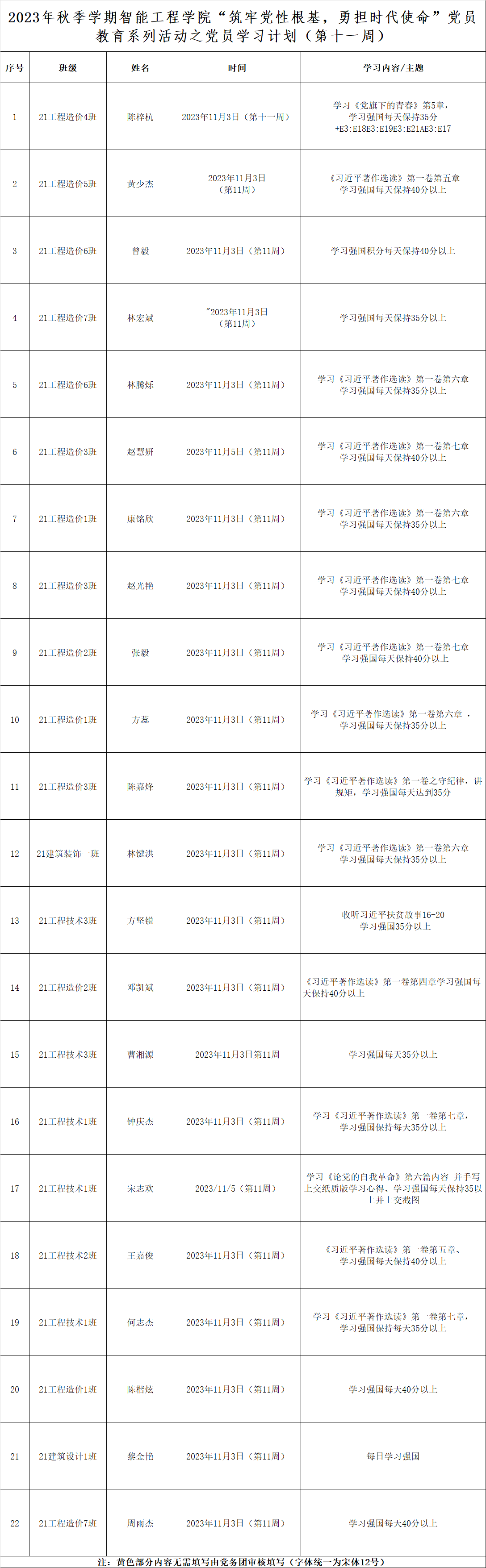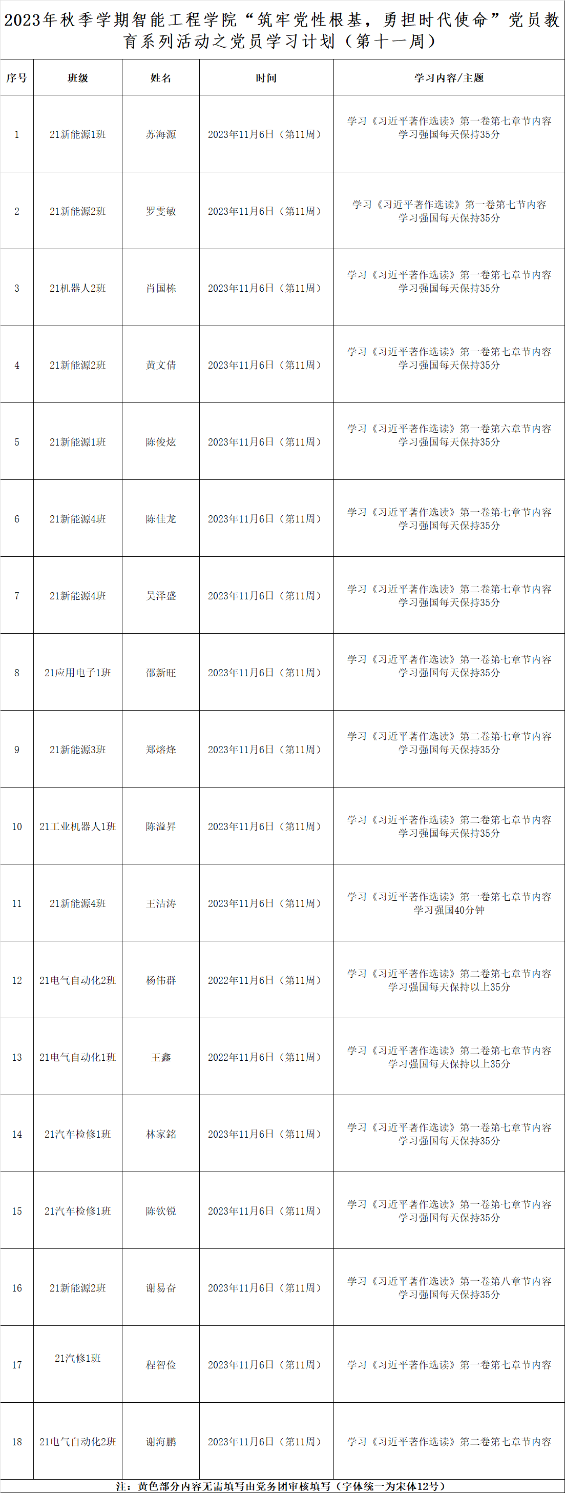 为深化党员的自我教育管理模式,切实提升党员自我教育管理实效,智能工程学院党总支针对现阶段党员教育管理不足现状,积极探索,组织开展党员自我教育学习活动,锚定学习目标,认真贯彻落实,狠抓推进整改,抓好奖励惩罚。现将第十一周党员学习计划及检查结果公布如下。