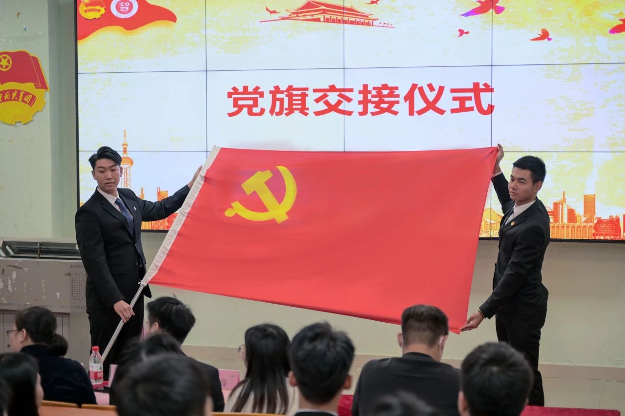 进行党旗交接仪式,党旗的交接不仅是新旧血液的交换,也是组织间活力的传承。