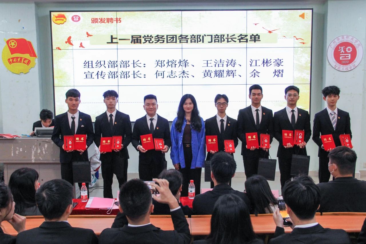 为加强智能工程学院学生党务工作队伍建设,智能工程学院于2023年11月15日在博c101召开第三届党务团换届大会。学工助理张蒙莉、学生第一党支部书记魏文香、院团委书记周燕清、院团委副书记陈泽鑫及各辅导员出席此次大会,列席人员有21级党务团干部,22级党务团新任干部,23级党务团新生干事及各班级代表。