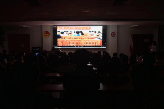 观看党务团过往活动集锦视频。视频以新颖有趣的形式回顾2022-2023学年我院举办的党建工作和活动,党务团全体成员认真工作的身影感染了在场的每位观众。