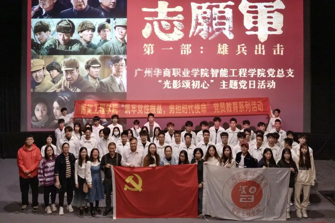 为深入学习贯彻习近平新时代中国特色社会主义思想,引领广大青年学子弘扬爱国主义精神,传承红色基因,智能工程学院党总支于11月30日下午组织党员老师代表、全体预备党员、发展对象、入党积极分子代表、班级学生代表前往增城区万达影城开展“光影颂初心”主题党日活动,本次活动观看的影片为:《志愿军:雄兵出击》。