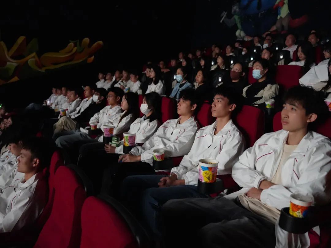 观影过程中,老师、同学们端坐于座位之上,认真观看,沉浸于电影情节之中。影片呈现了往日的艰苦作战情景,在恶劣的环境中先烈们英勇无畏、悍不畏死的场景让在场的同学为之感动,进一步增强了师生党员、青年学生的爱国之情,倍感珍惜当前的幸福生活。